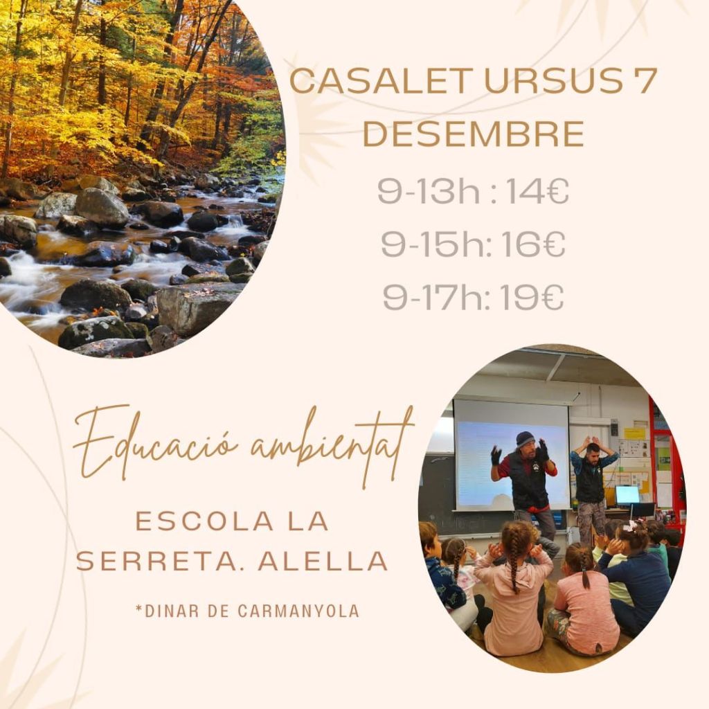 L’empresa Ursus Natura ens ofereix casalet pels dies 13 d’octubre. Són els dies prèvis a començar el nou curs escolar.