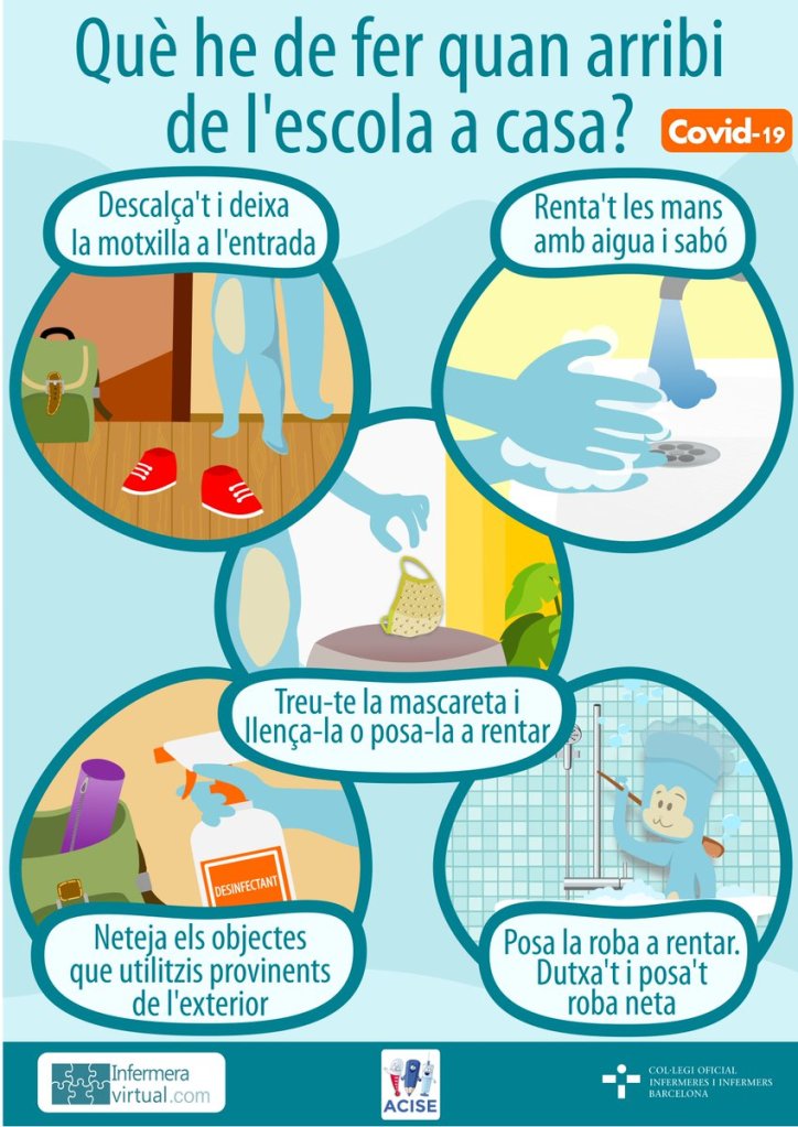 Us recorden la importància de mantenir la mascareta ben ficada a les entrades i sortides de l’escola tant dels nens com dels familiars, fer una bona higiene de mans i mantenir la distància de seguretat amb altres pares i nens.